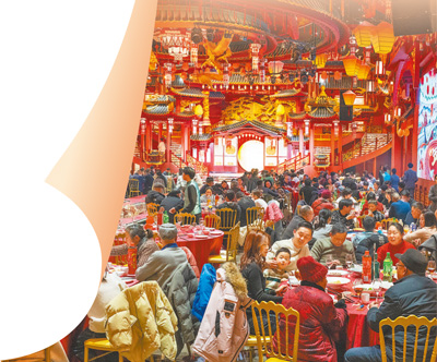安徽芜湖市繁昌区一家酒店内,顾客们在吃年夜饭。 肖本祥摄(新华社发) 编者按:当街头巷尾飘来糖瓜的焦香,门框窗棂换上火红的新装,绚烂的灯光映照夜空……千家万户的“炊烟”里,汇聚起跨越万里山河的情感,升腾起年的气息。 年味渐浓处,人间共此时。游子归乡,亲人团聚,一桌年夜饭诉说彼此的思念;贴春联、挂彩灯、拍全家福,祈愿吉祥如意。年的脚步,丈量着生生不息的轮回。 非遗传承人巧手翻飞,古老技艺焕发新的光彩,年轻人在多姿多彩的非遗展演中,触摸春节的文化脉搏;各地游客循着年俗地图享受休闲时光,在山水城乡间生成共同的节庆记忆。年的底蕴,在多彩文化活动中愈发深厚。 时代向前,年味不变。春节是节令的刻度,是滚烫的文化血脉,更是中华文明在岁月长河中生生不息的密码。 山乡“村晚”欢乐多 本报记者 徐 靖 1月28日,安徽滁州市全椒县武岗镇武岗村文化广场上,暖阳洒满地面。 “这是我们武岗镇连续7年举办‘村晚’了,老百姓可都期待着。”全椒县文化馆武岗镇分馆馆长李爱玫告诉记者,“今天我们准备了16个节目,有花灯、舞蹈、独唱、小品、戏曲等,都是大家爱看的。” “爷爷快看,奶奶上台了。”“妈妈,快给外婆拍照。”……随着演出开始,台上演员全情投入,“扭”出风采、“舞”出活力,台下父老乡亲热情洋溢、喜乐开怀,现场观众纷纷拿起手机拍视频,记录精彩。“所有节目都是本地村民自编自导、自排自演,他们白天忙农活、干家务,晚上来镇综合文化服务中心多功能厅排练节目。‘村晚’在发出节目征集通知后,几天时间就收到了20多个节目报名,在综合考虑演出时长和节目类型后,最终选取了16个节目。”李爱玫向记者介绍,“为了不让落选的演员们失望,我们在节目编排时尽量让大家多参与。” 吴帮霞就是全椒县“村晚”表演的“常客”。吴帮霞自从退休后,就组建起一支广场舞队伍,在全县多处演出。“我们这支队伍大多是60后。平时我自己找音乐、想动作,然后带着大家一起练,哪里有演出,我们就报名参加。”吴帮霞一边说一边打开手机,向记者介绍自己上传到社交软件上的演出视频。 短短一个小时的演出很快接近尾声,但村民们却意犹未尽。大家纷纷表示:“每年的‘村晚’都是我们村的大事,上台演出的都是我们村的村民,他们演得像模像样,我们看得十分开心,希望继续办下去。” 大运河畔品年俗 本报记者 江 南 1月28日,在京杭大运河最南端的浙江杭州市拱墅区拱宸桥街道,西直街上数百盏鱼灯高悬,形态各异的“福”字装点成一整面“百福墙”,“书香守岁·邻里联欢”活动精彩纷呈。 读书品诗、吹拉弹唱等活动,吸引了社区居民、经营商户、各地书友、国外游客,还有在当地工作的保洁员、保安、快递小哥等。“书香亦是佳肴。”拱宸桥街道桥西社区党委书记项政感慨,“‘书香守岁’活动的‘朋友圈’一年年壮大。” 外地游客罗女士刚在手工艺活态馆里领到一本“好运手账”,手账上新盖的印章图案正是眼前的大运河拱宸桥。“我们一家人打算跟着手账上的推荐线路,一路走运河、品年俗,好好体验一下这里的文化味。”罗女士说。 春节假期,杭州桥西历史文化街区每天有川剧变脸、戏曲快闪、国乐赋美等演出和活动,运河边的“年俗集市”汇聚了打年糕、做年糖、雕葫芦、做年宵花等传统年俗手艺,还有传统木造、布艺、纸伞制作等非遗文化展示。 入境中国过春节 本报记者 沈文敏 一串串灯笼高高挂起,一株株鲜花簇拥绽放……上海浦东国际机场航站楼里洋溢着节日的喜庆气氛。走进候机楼大厅,伴随着此起彼伏的登机广播声,出行的旅客来来往往。 “好久没有回来看看了,回家真好!这次带女儿回来就想与亲人好好团聚。”1月26日,澳大利亚籍华人邵先生办理完入境手续后说,这些年在国外生活,虽然各方面都很便利,但每到春节,对家乡的思念就愈发浓烈。 中国免签政策持续优化,目前,过境免签外国人在境内停留时间延长至240小时。近期,越来越多的外国人选择来华开启一场“说走就走的旅行”,体验中国年味儿。 据上海出入境边防检查总站统计,春运开始至1月26日,该总站已查验入境外籍人员数量超13万人次,其中免签入境的外籍人员数量达7.5万人次,占入境外籍人员总数的57.3%。 “因为有了免签政策,现在来中国非常方便。这次要在上海多待几天,去豫园、外滩、南京路等景点转一转,感受一下中国的传统春节。”德国旅客托林罗宾对舞龙、舞狮、吹糖人、猜灯谜等年俗表演有着浓厚兴趣,此次特地前来体验。 电商赋能销售旺 本报记者 白光迪 天刚蒙蒙亮,江苏宿迁市沭阳县国际花木城便热闹起来。春节期间,蝴蝶兰、君子兰等年宵花成为消费者的“心头好”。商户臧守同正加班加点,忙着将花木盆景整理装箱,“订单爆满,这些天日均销售额2万元左右。” 线下忙碌,线上火热。在沭阳县艺森园盆景直播基地,一场别开生面的“矩阵直播”活动正在进行。“来看看这红梅盆景,造型独特,寓意喜庆,喜欢的可以喊价了!”主播热情解说,直播间里不断有消费者留言竞价。 “从‘单兵作战’到‘攥指成拳’,‘矩阵直播’优势明显。一场直播最多能吸引40多万名观众,单场最高成交额达百万元。”基地负责人周艳玲介绍,该基地计划春节期间举办多场特别直播,把沭阳花木推广出去。 一株黄