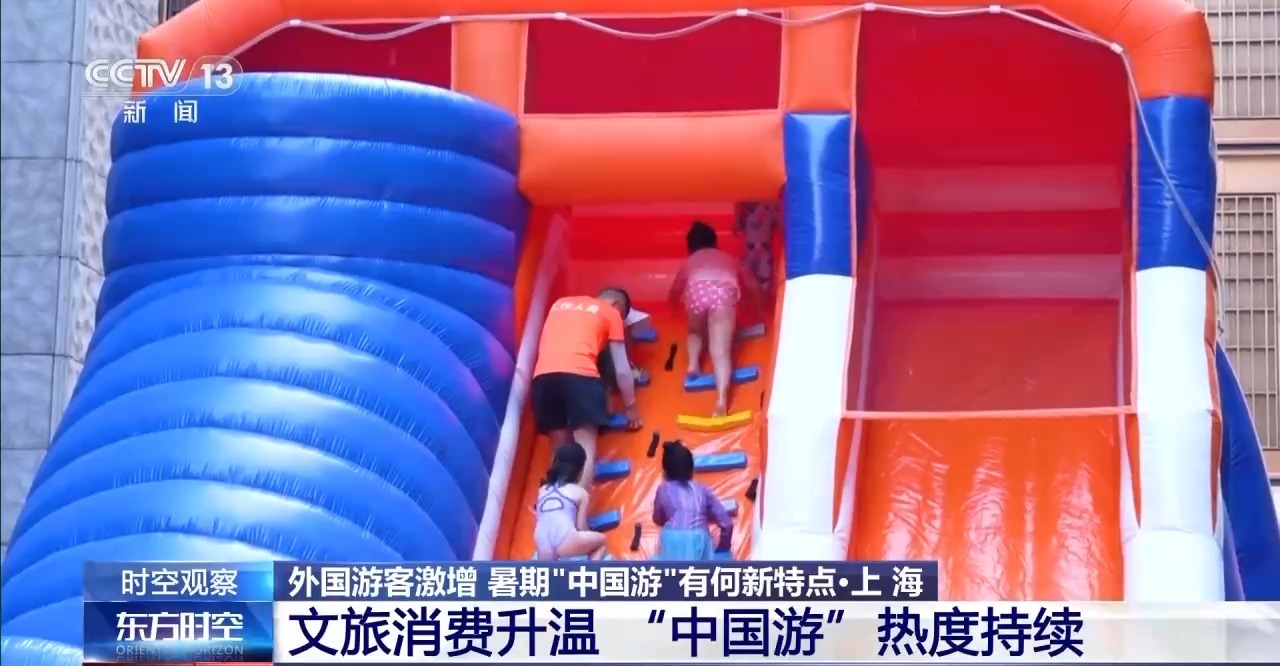 “清凉经济”也是这个夏天的热门打开方式。7月以来,上海外滩搬来了一座暑期限定的水上乐园,带领市民游客开启玩水模式。打水仗、荡秋千、爬索道,每个角落都藏着意想不到的清凉惊喜。